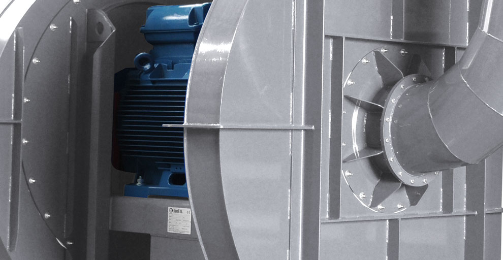This machine has been designed to replace lobe compressors (roots) in a cement factory. To withstand high pressure values, the structure is reinforced and manufactured with increased thickness. The advantage of this fan is higher efficiency and lower noise level, with respect to a blower, whose technical specifications are equivalent.