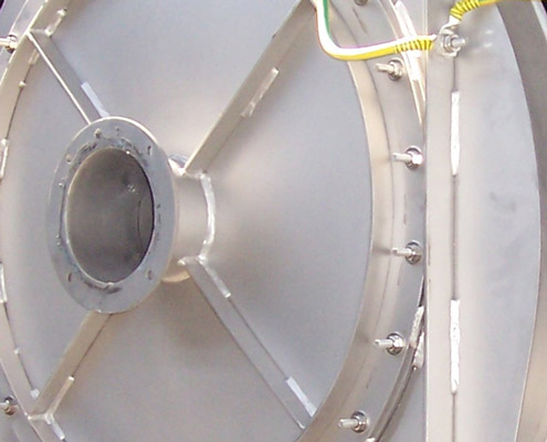 The fan is manufactured in compliance with ATEX directive.In the picture you can see the housing for the bearings and the double-ring seal in AISI 316 L, with a provision for nitrogen blowing to guarantee an excellent sealing system.