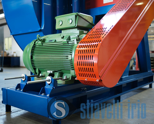 The fan we supplied to the paper mill is installed after the dedusting system and is manufactured and certified according to ATEX standards, because of the potentially explosive atmosphere in which it is located. To limit the energy consumption, we opted for an high efficiency impeller and an IE4 electric motor.