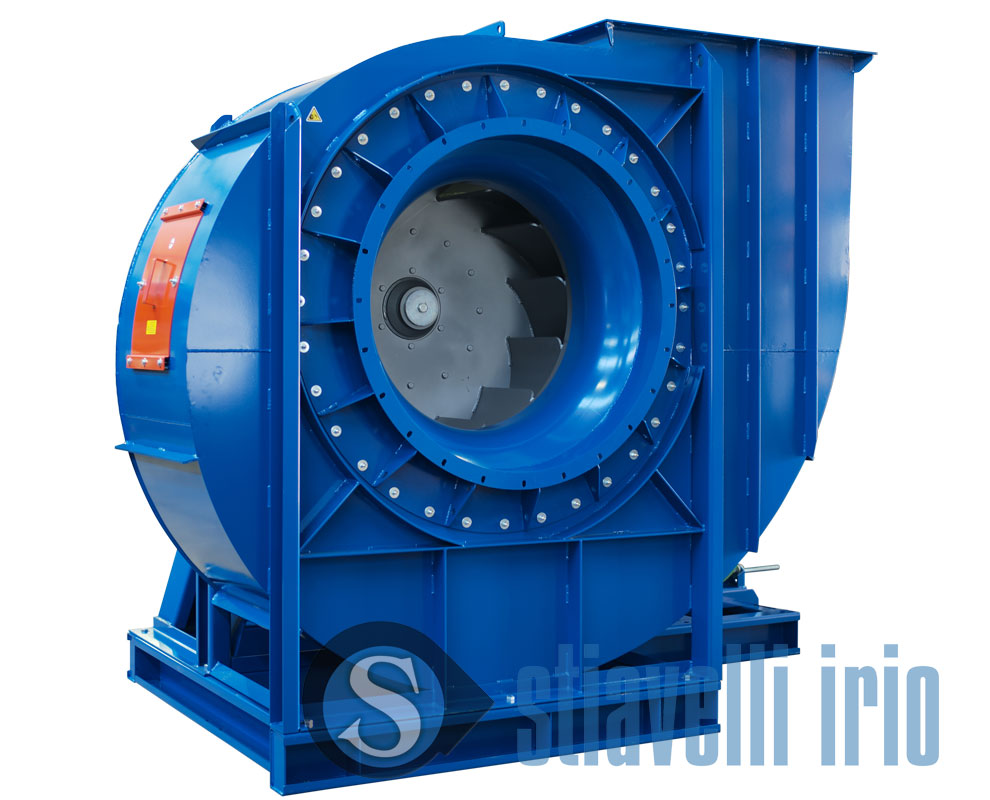 Centrifugal fan employed in a paper mill for the dedusting system.